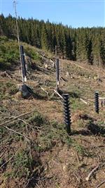 Det er sett ut 4 feller for å fange biller. Etter 2 tømmingar i år har fangsten så langt vore liten og mindre enn frykta. Dette kan vi truleg takke det kalde og fuktige været for. Det er frykta oppblomstring av barkbiller etter fjorårets rekordvarme og tørke. Skogbruksnæringa er derfor i beredskap om dette skulle slå til. Biletet viser dei 4 fellene på hogstflata.