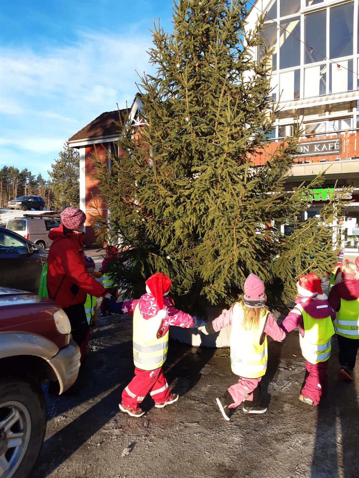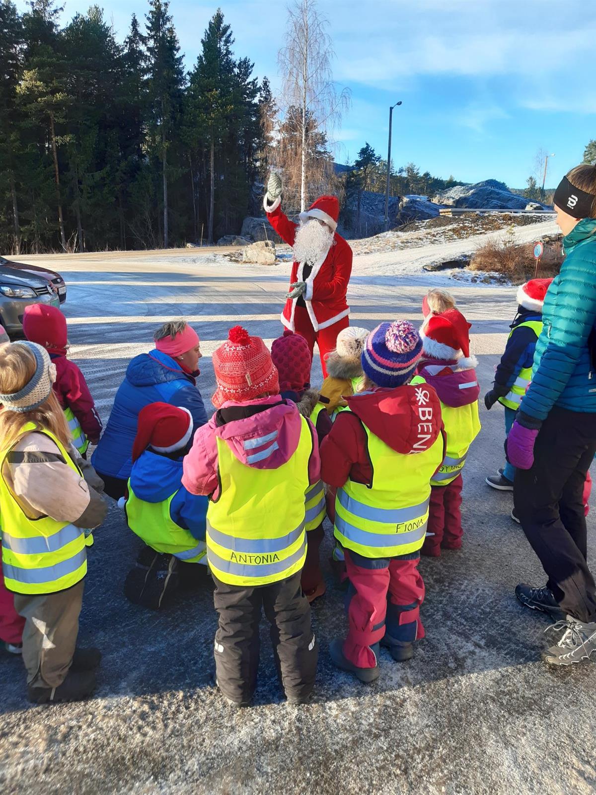 Dei eldste barna i Røn naturbarnehage var med på julegrantenning ved Kiwi torsdag, i strålande sol og med besøk av nissen, sang rundt juletreet og godt med nissegraut var det også, som vi fekk av Bygdekvinnelaget.
