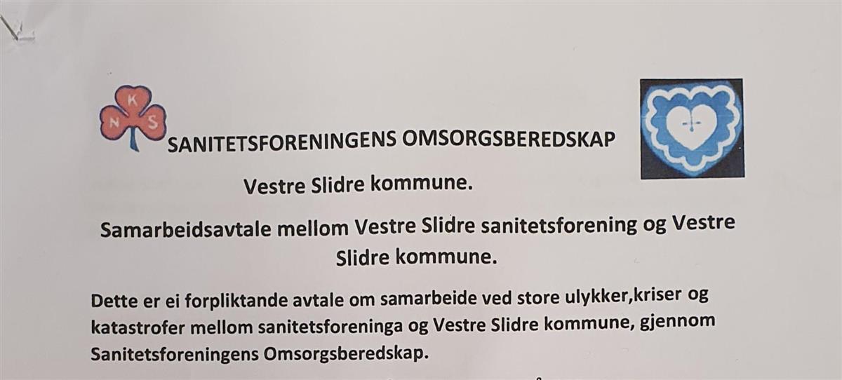 Vestre Slidre kommune og Vestre Slidre sanitetsforening har eit samarbeid knytt til beredskap. Vestre Slidre sanitetsforening er m.a. deltakar i ordføraren sitt beredskapsråd. Sanitetsforeninga og kommunen har no signert ei samarbeidsavtale om korleis sanitetsforeninga skal bidra ved store ulykker, kriser og katastrofer.