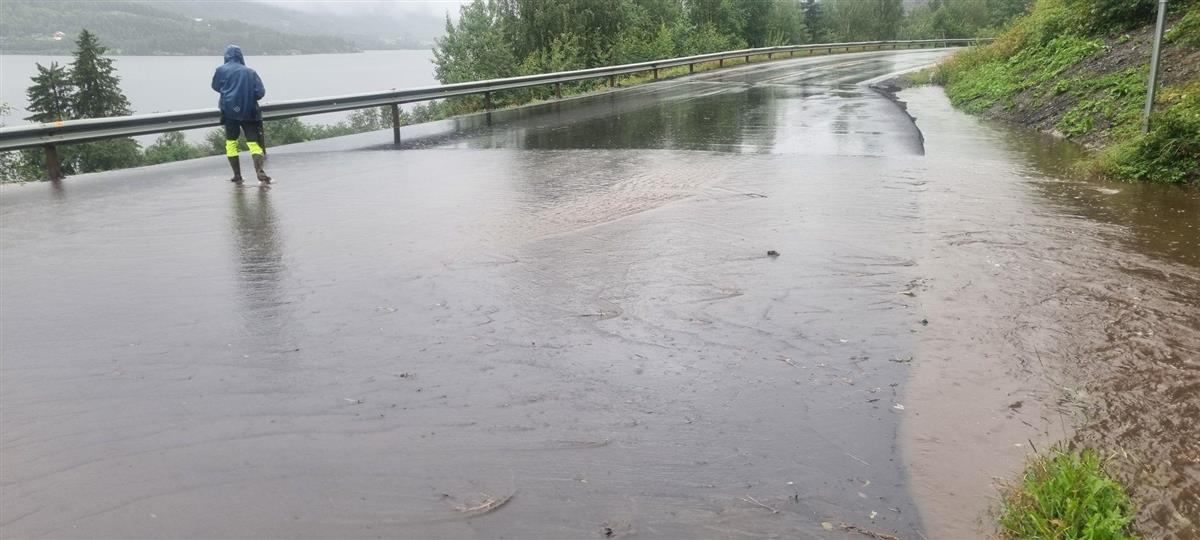 Unngå unødig ferdsel og hald de gjerne heime til ekstremvêret er overDet er mykje vatn i vegbanene, så kjør forsiktig då det kjem brått på! Ved Einangbrua på E16 kl 09.00 tysdag 8.aug Sist endra 08.08.2023 10.00